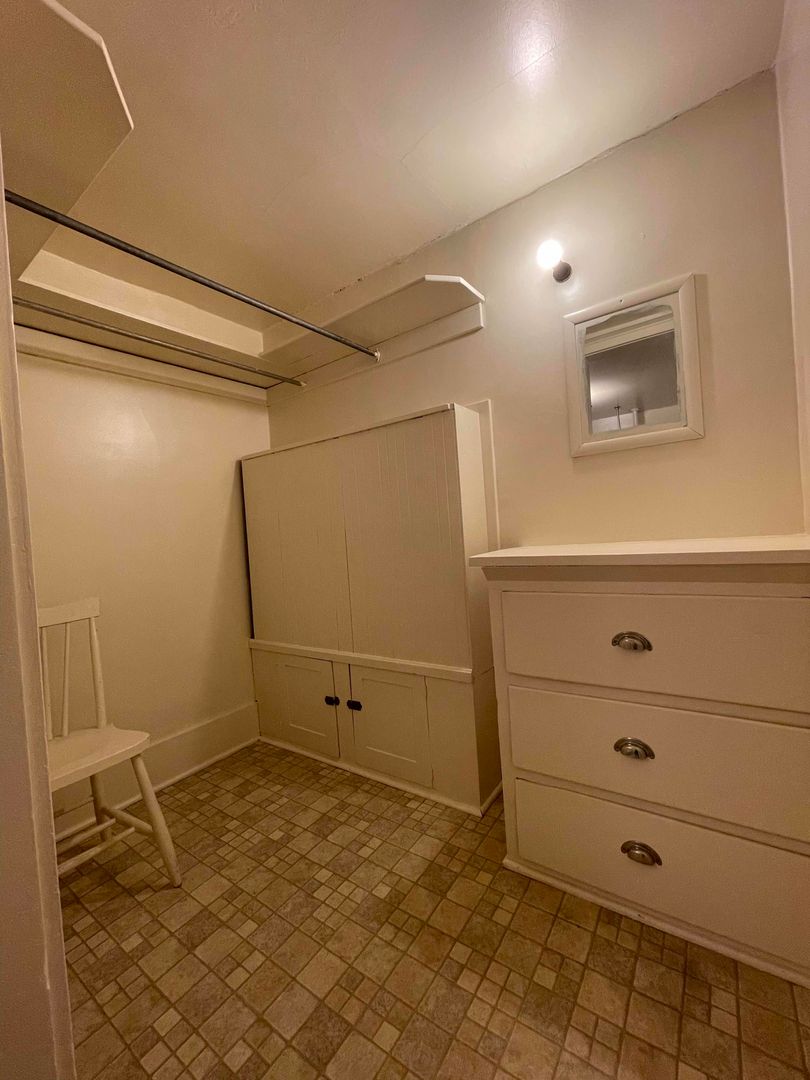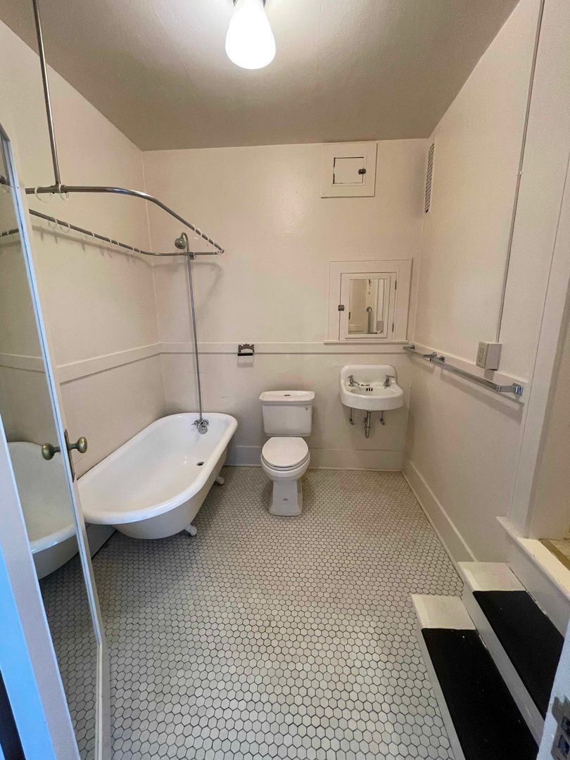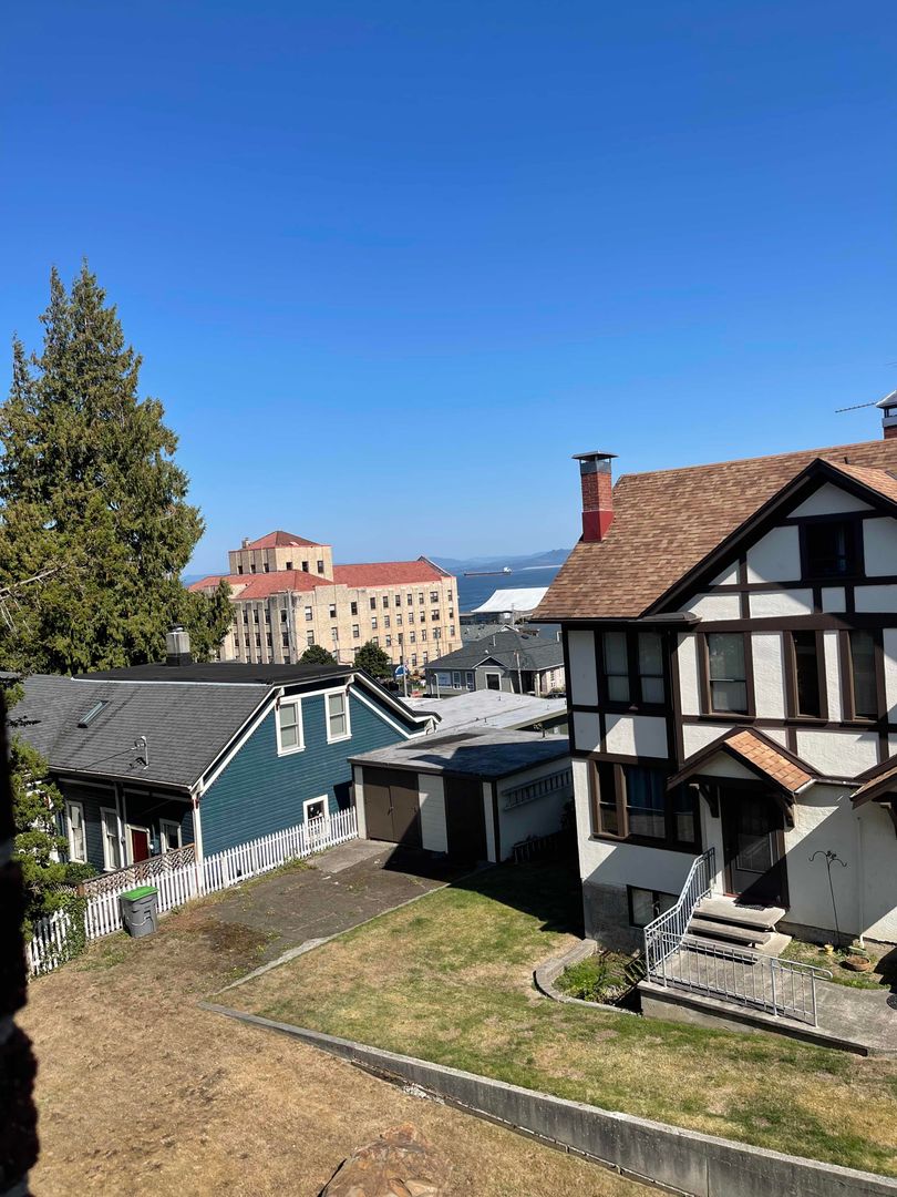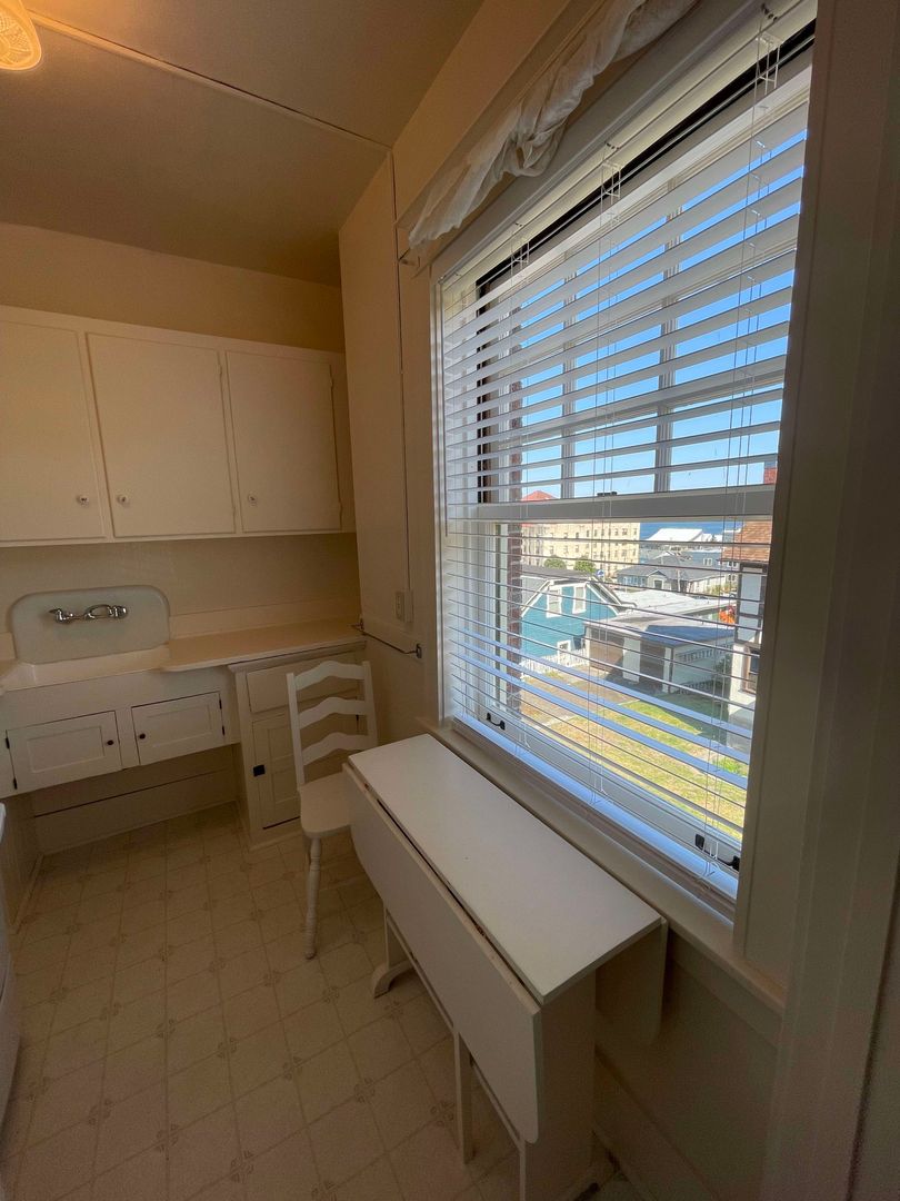 Right now, you have a chance to experience the history and beauty of the building with an inside perspective. This updated mostly furnished top level studio unit has nice views of Downtown Astoria and the Columbia River and maintains much of its original detail and charm. It features newer paint and carpet. Living area features large windows, tall ceilings, couch, coffee table, dining table with chairs and roll out bed. Bathroom features historic tile floors, clawfoot tub with shower, and large walk up closet with built in dresser.