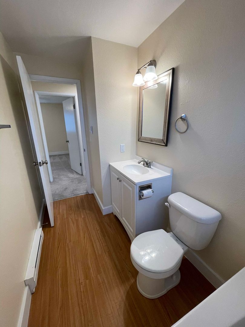 Lower Level Two-Bedroom apartment in private location with open kitchen featuring dining area, stove, refrigerator & dishwasher, larger living room, oversized closet in larger bedroom and shower/tub combo in bathroom. New paint, siding, energy efficient dual-pane windows and slider, front door, and fixtures in 2019. Deck with a view of the Columbia River and bridge. Coin-op laundry in the building. Assigned off-street parking.